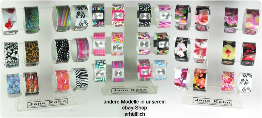 Trendy Designs inspiriert durch die Farben und Mode der 60'er und 70'er. Die Spangenuhr ist nicht nur eine Uhr, sondern gleichzeitig auch ein modischer Armreif.