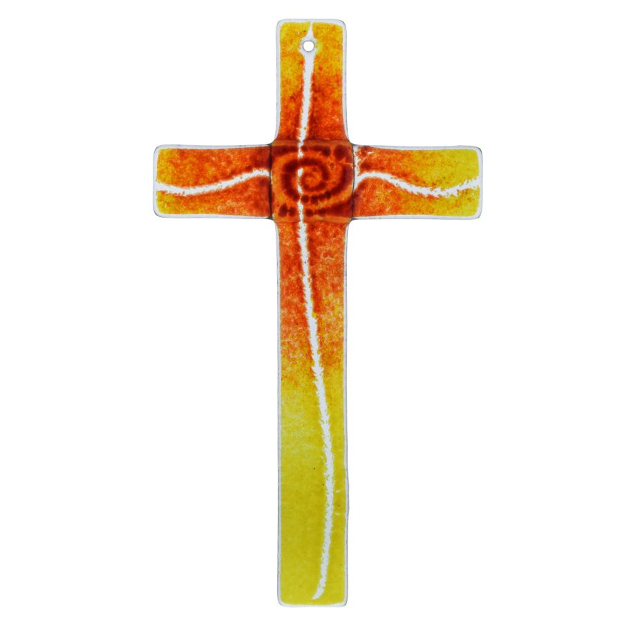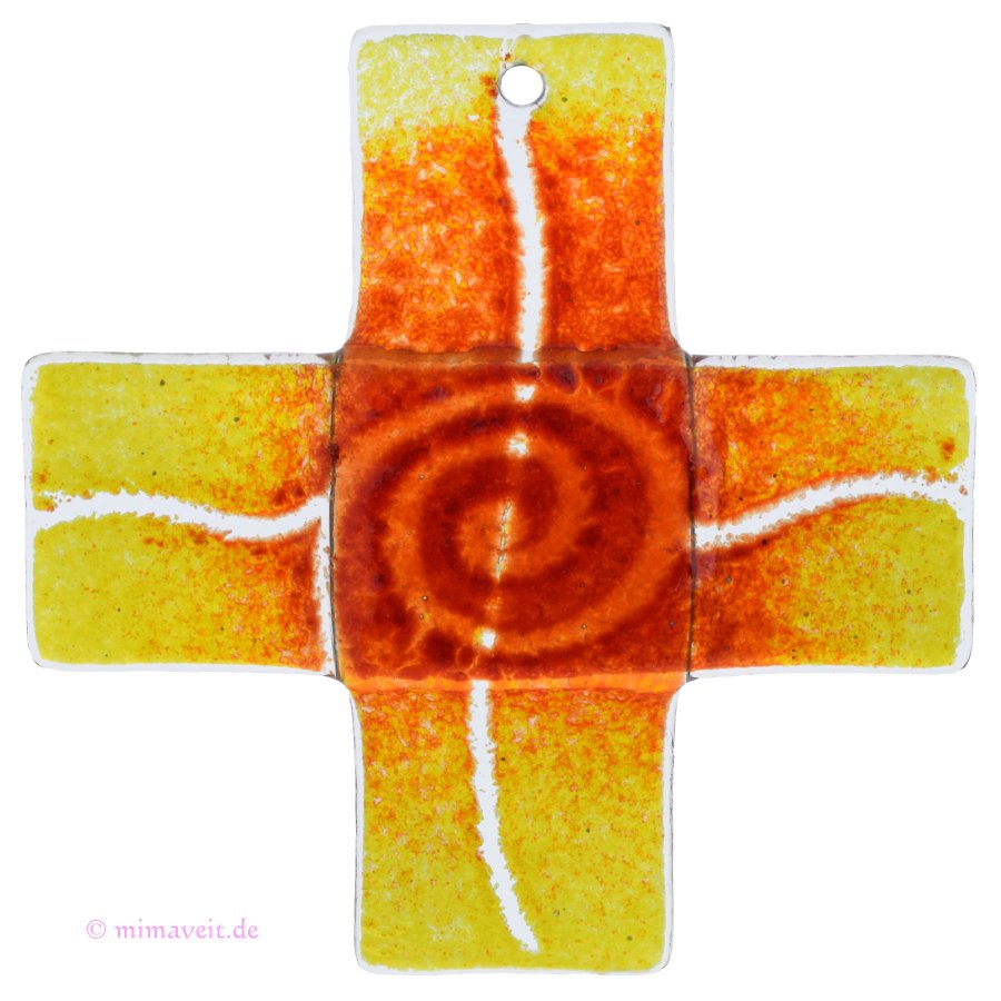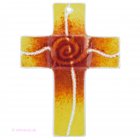 Glaskreuz Kreuz aus Glas Wandkreuz Spirale bordeaux gelbopal