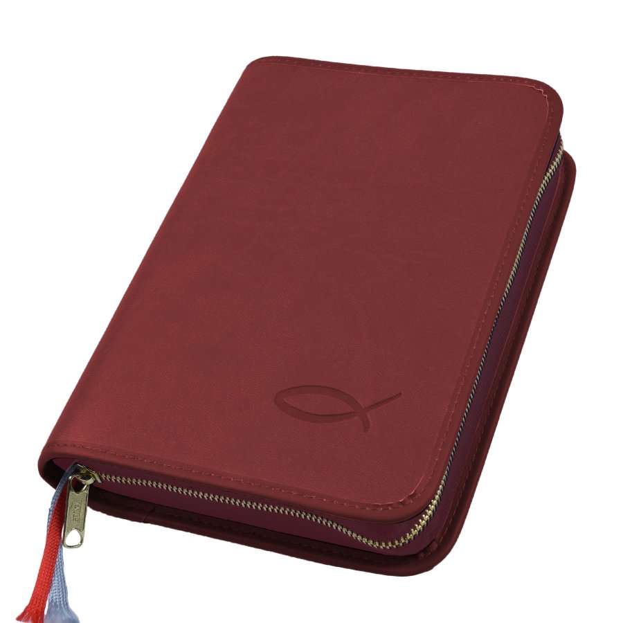 Gotteslobhülle Kunstleder rot mit eingeprägtem Fisch für das neue Gotteslob
