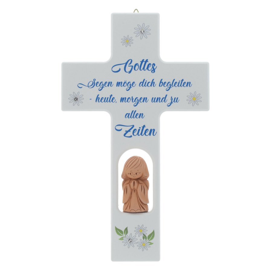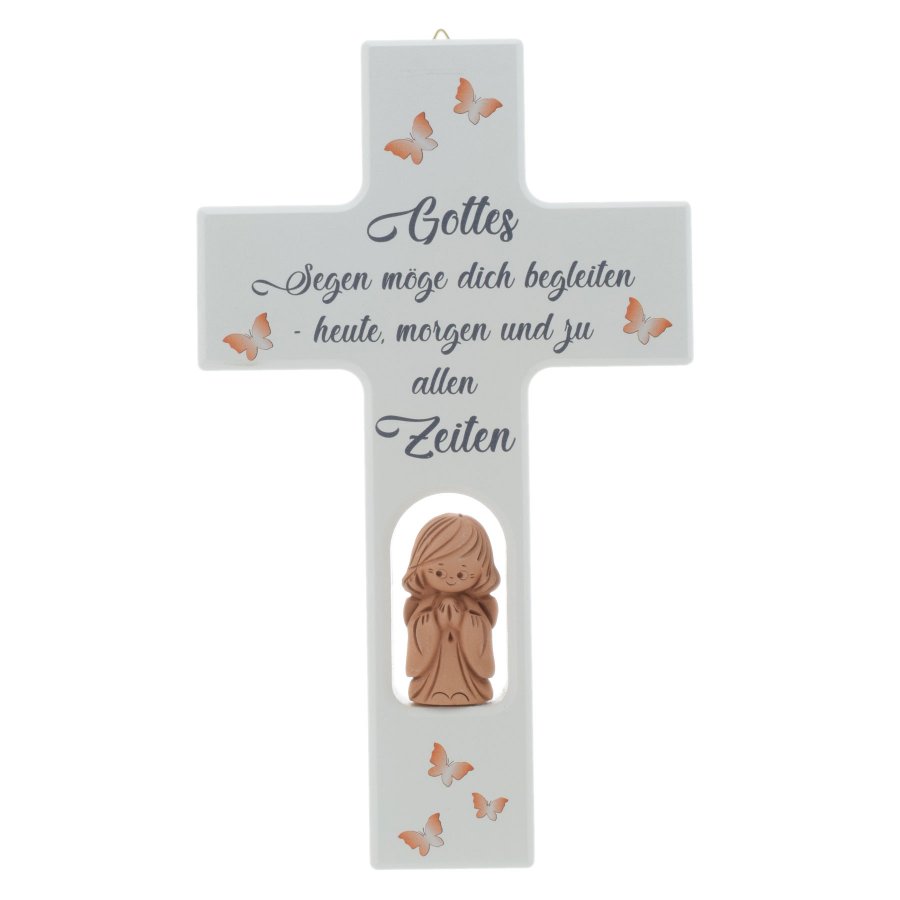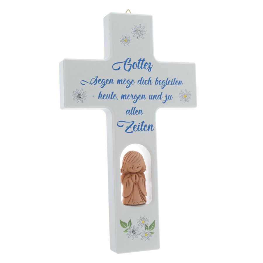 Kinderkreuz Kreuz weiß aus Holz mit Schutzengel Gottes Segen