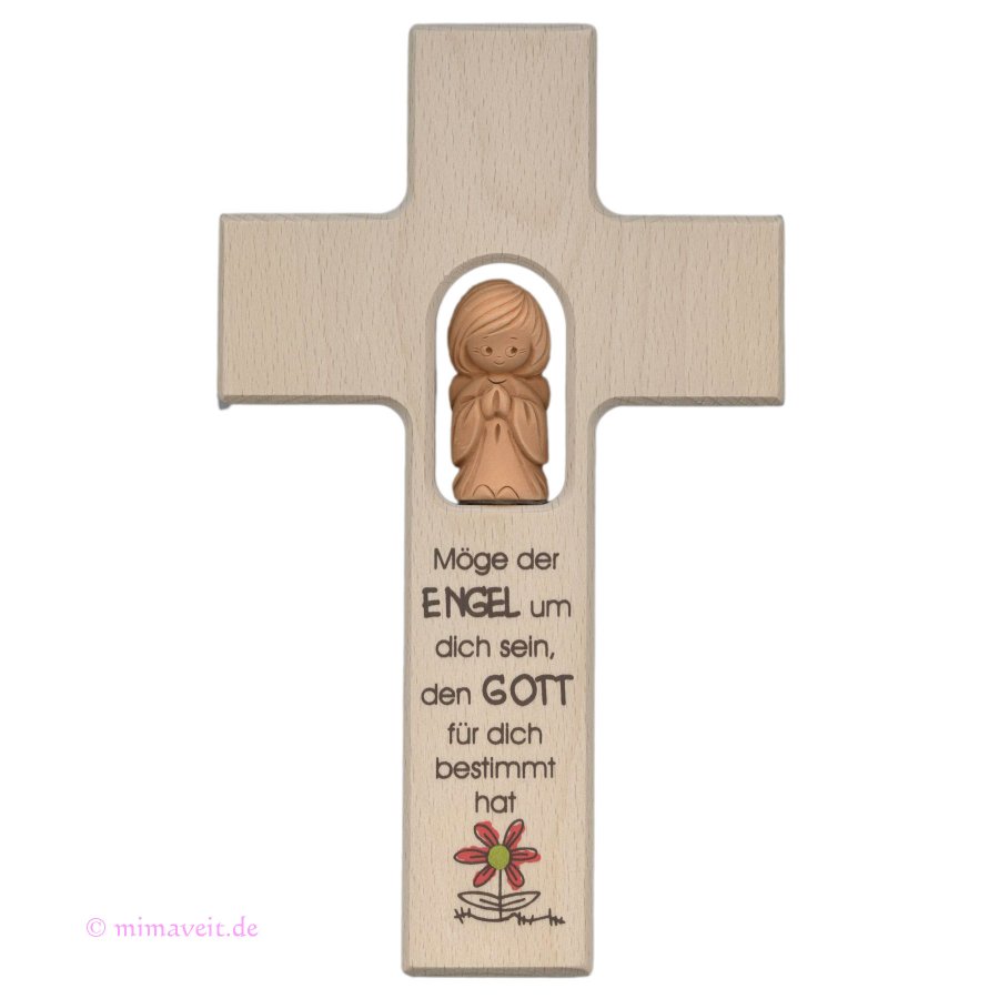 Kinderkreuz aus Ahorn "Möge der Engel um dich sein, den Gott..."