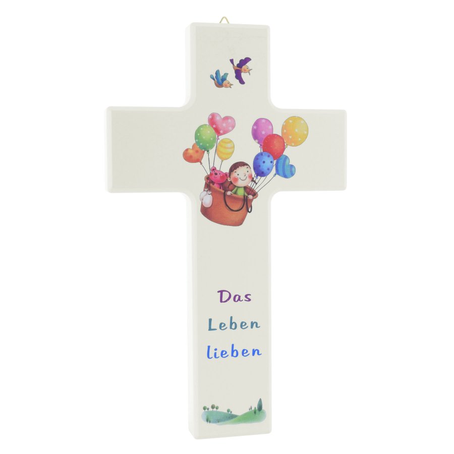 Kreuz aus Holz für Kinder Das Leben lieben Kind mit Ballons