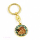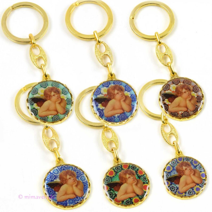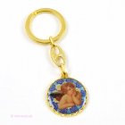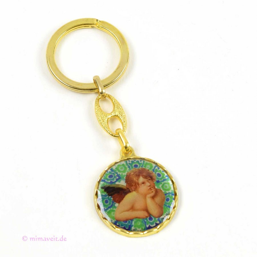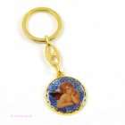 Goldfarbener Schlüsselanhänger mit Schutzengelbild und breitem Keyring, wodurch sich Ihre Schlüssel leicht auffädeln lassen.